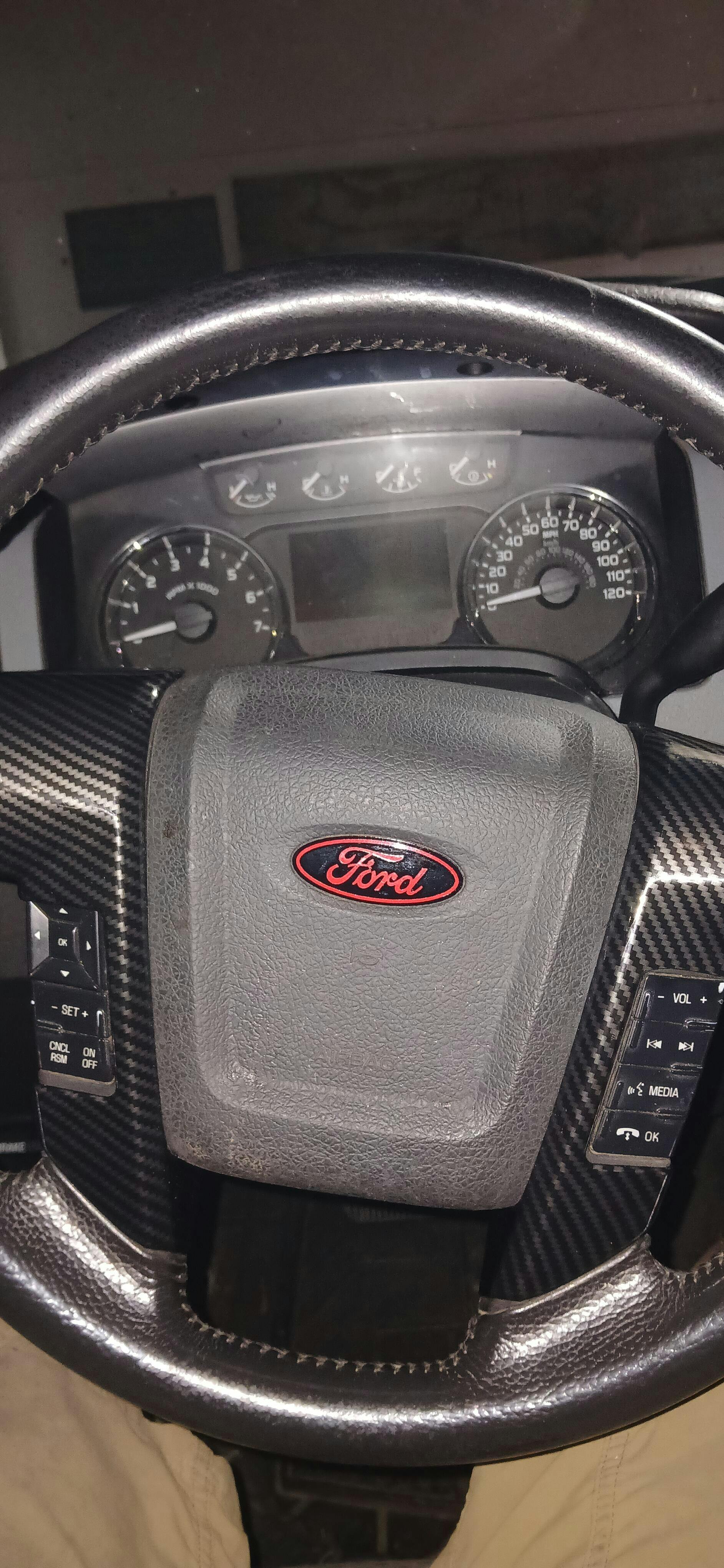Black/Red Steering Wheel Vinyl Decal Compatible with Ford Airbag Emblem Overlay Decal